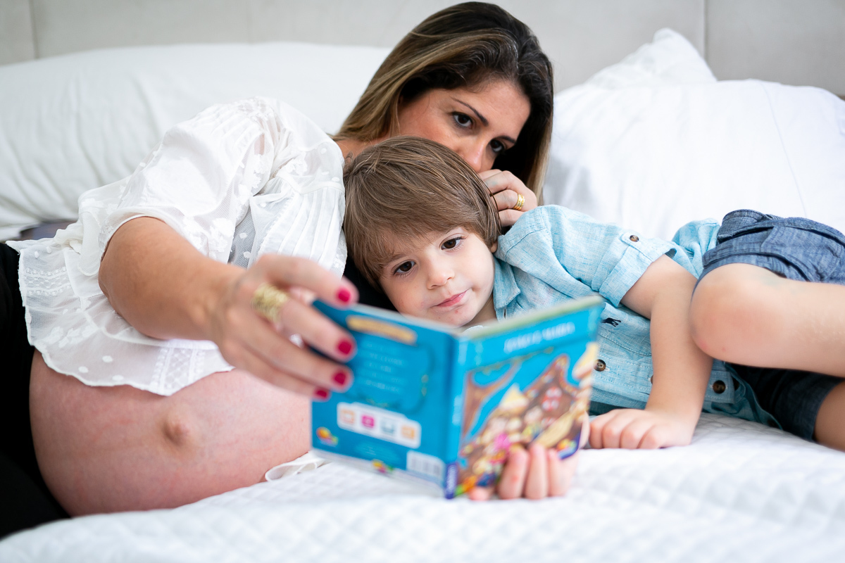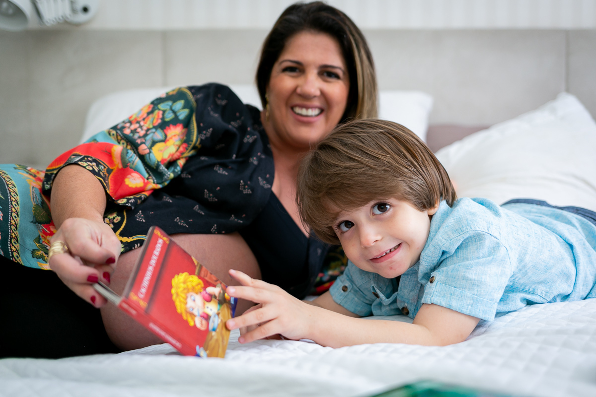 O Pedrinho roubou a cena durante o ensaio gestante da sua mãe, a Angela.